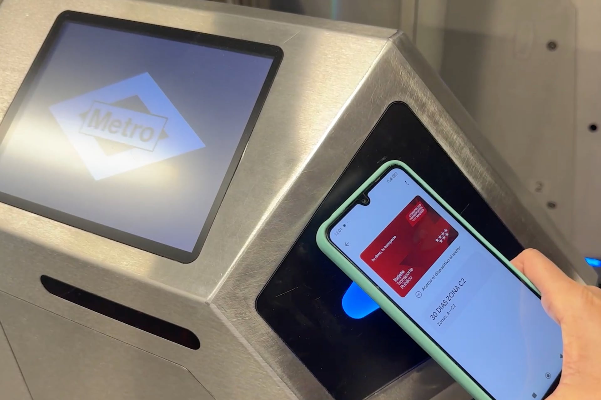 Una vez has configurado tu tarjeta de abono virtual, cuando vayas a viajar en transporte público de Madrid, en vez de validar el viaje con tu tarjeta física, deberás acercar tu teléfono Android a los lectores NFC disponibles en metro, bus, cercanías y demás sistemas de transporte. En concreto, tendrás que abrir la app Google Wallet, seleccionar la tarjeta de transporte y, finalmente, acercar el teléfono al torno con lector NFC.