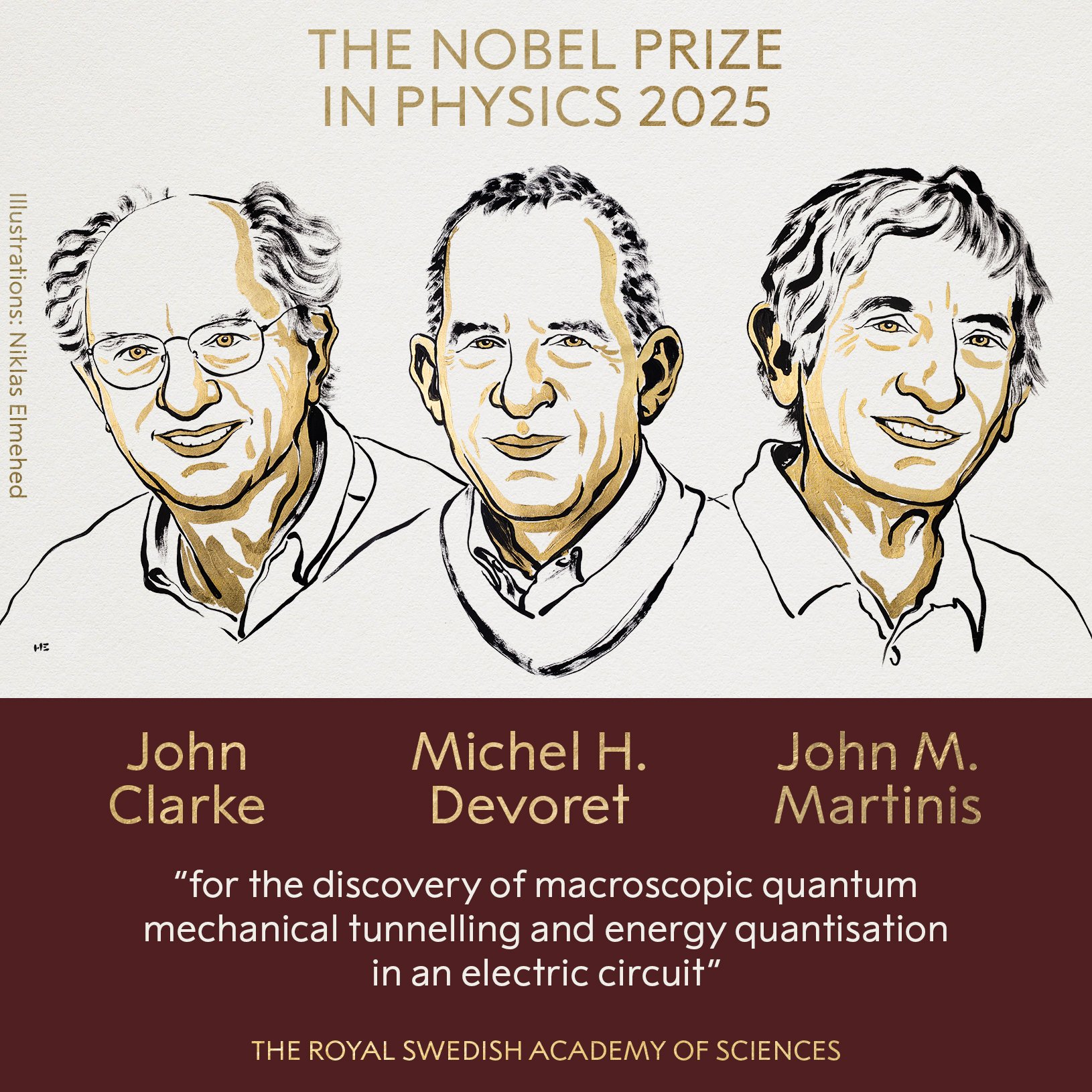 Los galardonados en física de 2025 desafiaron el salto de la mecánica cuántica a escala macroscópica. Realizaron experimentos con un circuito eléctrico en el que demostraron tanto el efecto túnel mecanocuántico como los niveles de energía cuantizados en un sistema lo suficientemente grande como para sostenerlo en la mano.